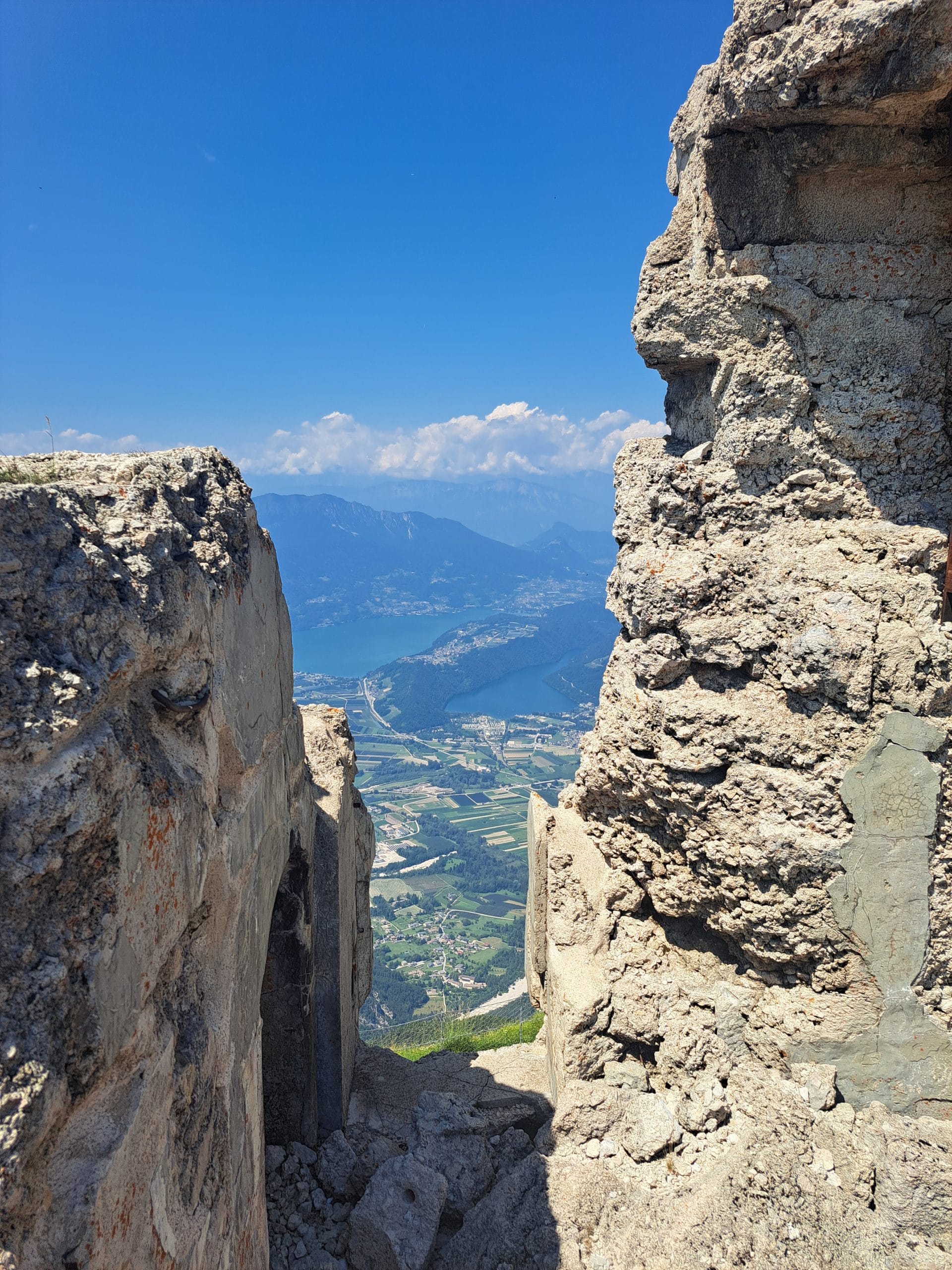 Il panorama tanto atteso è sempre nascosto dalla montagna fino a quando, dopo circa 1 ora e 30 di cammino nel verde, si vede la Cima a 1900 m. d’altezza, con un forte della Grande Guerra chiamato Forte Cima Vezzena.